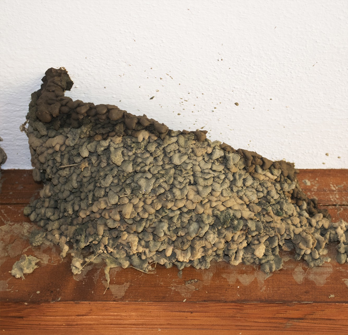 Después de varios años volvieron las oscuras golondrinas para colgar sus nidos en mi porche. Trabajan con la perfección de expertos ingenieros y arquitectos. Como si se tratara de intrusos generalmente vienen cuando no hay nadie en la casa. Aunque en ocasiones las he visto revoloteando entre las columnas de ladrillo visto normalmente me doy cuenta de que han estado trabajando porque veo restos de tierra en el suelo.