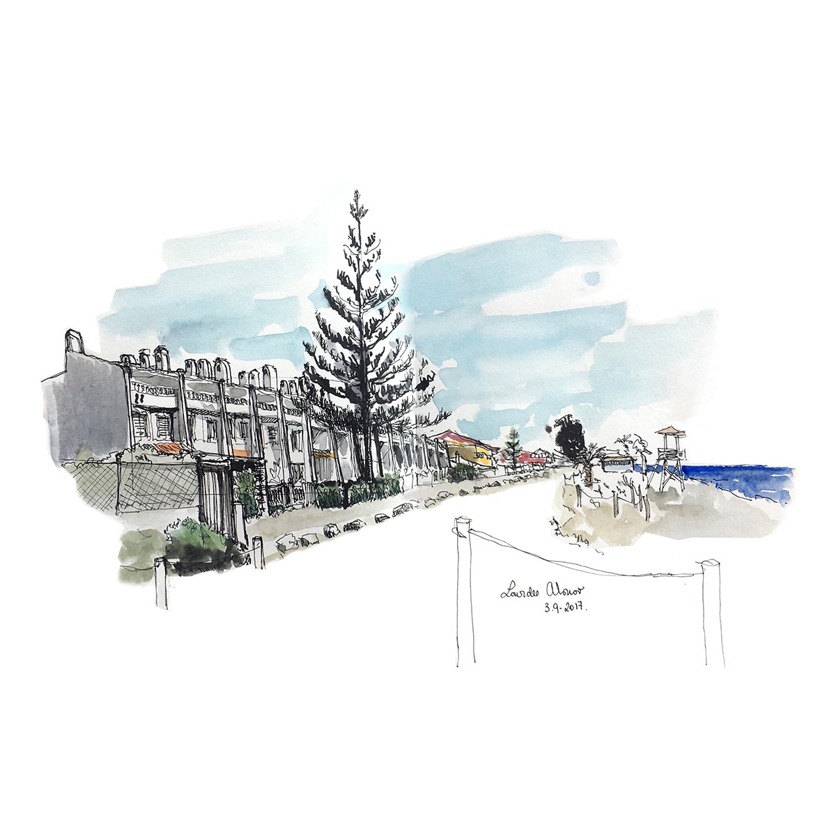Estas coníferas procedentes del hemisferio sur (que llegan a alcanzar hasta cincuenta metros de altura) protagonizan algunos de mis sketches de la zona.