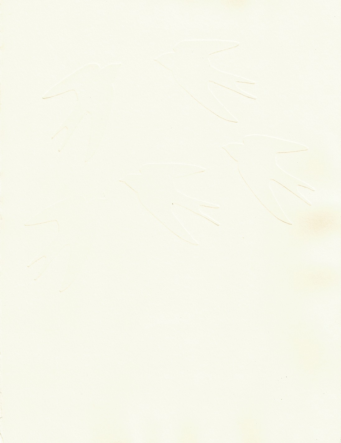 Esta obra reúne tres historias diferentes relacionadas con pájaros y con mi familia. Cada historia está escrita en el reverso de una fotografía. La fotografía la he recortado en 16 partes y las he transformado en etiquetas que cuelgan de un nido. Si unimos todas las piezas de una misma fotografía podemos leer la historia escrita en su reverso.